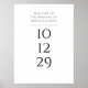 An elegant welcome sign featuring your special date and names, set in modern typography. Designed by Thisisnotme©