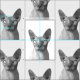 Black and White Sphynx Cat Portrait Fabric