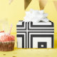 This decorative holiday wrapping paper features a contemporary retro abstract pattern of nested black and white squares.
