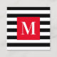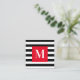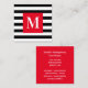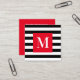 Black and White Stripe Bright Red Monogram Square Business Card