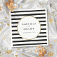 With a classic black and white stripe background, these elegant wedding paper napkins feature an elegant faux gold foil border framing your names and special date set in chic typography. Designed by Thisisnotme©