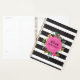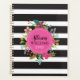 Perfect for home, school, or work - you will love the unique design of our Black and White Striped Floral Planner! This design features bold, black and white stripes with a hand-drawn floral border accent around a pink center circle. The center circle can be personalized with any text you would like such as your name, business, year, or monogram. The back cover features a cute black and white polka dot design. This makes an awesome personalized gift for friends or family as well as back to school students, college students, business owners, employees, or clients!