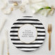 With a classic black and white stripe background, these elegant wedding paper plates feature an elegant faux gold foil border framing your wedding message set in chic typography. Designed by Thisisnotme©