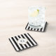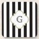 Black and White Stripe Pattern with White Monogram Drink Coaster