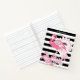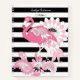 The product design features a flamingo with kaleidoscopic paisley patterns in shades of pink over black and white stripes background. This tropical bird design with personalized text makes a modern and unique notebook.