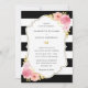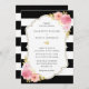 Black and White Striped Blush Pink Floral Wedding Invitation