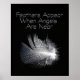 A photograph of a pretty black and white striped feather floating on a pond. It had drifted out from the shadows into the bright sunshine to shine above the dark water below. Some people say that feathers appear when angels are near.