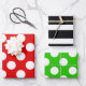 Black and White Striped Green Red Polka Dot Wrapping Paper Sheets