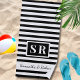 Black And White Striped Monogram Wedding Couple Beach Towel