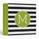 Black and White Striped Pattern Green Monogram 3 Ring Binder