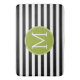 Black and White Striped Pattern Green Monogram Bathroom Mat