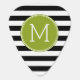 Black and White Striped Pattern Green Monogram Guitar Pick