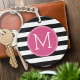 Black and White Striped Pattern Hot Pink Monogram Keychain