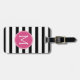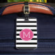 Black and White Striped Pattern Hot Pink Monogram Luggage Tag