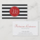 This chic & classy business card features a classic black and white horizontal striped background. On top of the background is a bright red decorative circle with a customizable white monogram. The back of the card is simple white with room for your name, job title & contact details. This is the ideal business cards for networking individuals, salons & spas, boutiques, makeup artists and fashion industry professionals.