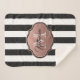 Black and White Stripes Monogram Sherpa Blanket
