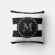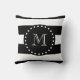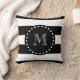 Black and White Stripes Pattern, Black Monogram Throw Pillow