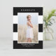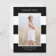 Announce your graduation with this customizable photo graduation announcement. It features black and white stripes pattern. Personalize this modern graduation announcement by adding a photo, name, school, year and other details. This photo graduation announcement card is available in other cardstock.