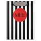 Black and White Stripes, Striped Pattern, Monogram Clipboard