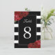 Black and White Stripes with Red Roses Table Numbers - Created by Colourful Designs Inc. Copyright 2013-2016. All text can be modified.