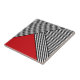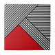 Simple abstract geometric design with black and white stripes and red triangle decoration
