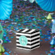 Black and White Stripes with Turquoise Monogram Favor Boxes