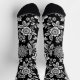 Black and white floral patterns weave intricately across the canvas, featuring a variety of flowers and leaves. The design is detailed and symmetrical, creating a harmonious and classic look.
