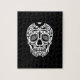 Black and White Sugar Skull With Rose Eyes Jigsaw Puzzle