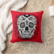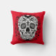 Black and White Sugar Skull With Rose Eyes Throw Pillow