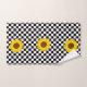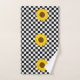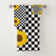 Black and White Sunflower Checkered Flower Pattern Bath Towel Set