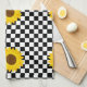 Black and White Sunflower Checkered Flower Pattern Kitchen Towel