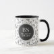 Doodle Swirls in black and white repeating pattern. Elegant mug in black and white personalized with your monogram and name.