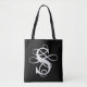 Black and White Swirly Flourish Initial Monogram Tote Bag