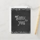 Black and White Thank You Cards. Beautiful vintage black chalkboard background with white font typography. Bokeh light edge accents.