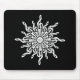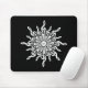 Unique music-themed mouse pad for musicians and music lovers for the winter holidays. Melting white g-clefs form a snowflake made out of treble clef notes. Use the text template to add an initial or monogram to the middle of the ornamental design. Edit to change the classic black background, center circle border, and elegant, old-style font to any color you wish. ♡ Idyllfire