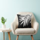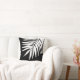 Black cushion printed with a simple white tropical palm tree leaf front and back