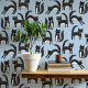 Black and White Tuxedo Cat Blue Art Wallpaper