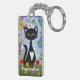 Black And White Tuxedo Cat In A Garden Personalize Keychain