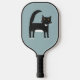 A cute black and white tuxedo cat for animal lovers, on a mid duck egg blue green background. Original art by Nic Squirrell.