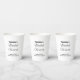 Classic and timeless paper cups that can complement various bridal shower themes. These are also suitable for brides-to-be who prefer a text based design without background elements for readability. The black texts contrasting on the white background also improves readability. The texts are center aligned and the fonts used are calligraphy, script and sans serif. Calligraphy and script fonts are used to enhance the design while the sans serif font is used to enhance readability. Customize it by typing the bride-to-be’s name, date and location. You can also change the contents or wordings in the design tool including the font style, font color and background color. Please check the appearance of the front and back sides after typing texts. If the appearance is pleasing to you, you can place your order now. If you need to resize or reposition the texts, please adjust in the design tool. Paper cups for serving beverages with a touch of personalization for your guests. Warm wishes to the bride-to-be.