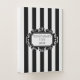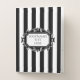 Pretty modern black and white vertical stripes with a vintage label on pocket folders for business, home, or school. Add your name and other text to them.