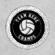 Black and white volleyball ball champs and team name patch that displays a white volleyball ball on black. There is custom text and a border around it and you can add the team name.