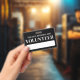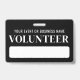 A simple and professional volunteer badge design, perfect for events, businesses, or organizations that rely on volunteers. "Volunteer" is prominently displayed at the top, with space below for the event or business name and date.