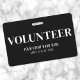 A simple and professional volunteer badge design, perfect for events, businesses, or organizations that rely on volunteers. "Volunteer" is prominently displayed at the top, with space below for the event or business name and date.