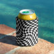 Black and White Warped Checkered Pattern Can Cooler