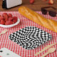 Black and White Warped Checkered Pattern Paper Plates