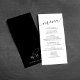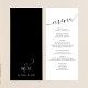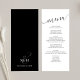 This design features a wedding dinner menu card with black and white style, an elegant, calligraphy script, and a classic meal course template as well as an elegant ampersand, minimalist style on the backside.