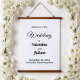 Wedding hanging tapestry with black text on white background for couples seeking a classic and timeless color combination that can complement various wedding themes. It is also suitable for couples who prefer a text based design without background elements for readability. The black text contrasting on the white background also improves readability. The text is center aligned and the fonts used are calligraphy, script and sans serif. Calligraphy and script fonts are used to enhance the design while the sans serif font is used to enhance readability. Customize it by typing the names of the bride and groom, date and location. You can also change the wording in the design tool including the font style, font color and background color. Please check the appearance after typing text. If the appearance is pleasing to you, you can place your order now. If you need to resize or reposition the text, please adjust in the design tool. A hanging tapestry to welcome your guests. To the bride and groom, congratulations on your engagement! Wishing you both a lifetime filled with love and happiness.