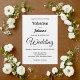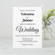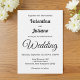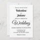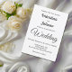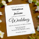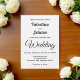 A wedding invitation with black text on white background for couples seeking a classic and timeless color combination that can complement various wedding themes. It is also suitable for couples who prefer a text based design without background elements for readability. The black text contrasting on the white background also improves readability. The text is center aligned and the fonts used are calligraphy, script and sans serif. Calligraphy and script fonts are used to enhance the design while the sans serif font is used to enhance readability. Customize it by typing the names of the bride and groom, day, date, time and venue of the wedding. You can also change the wording in the design tool including the font style, font color and background color. Please check the appearance of the front and back sides after typing text. If the appearance is pleasing to you, you can place your order now. If you need to resize or reposition the text, please adjust in the design tool. To the bride and groom, congratulations on your engagement! Wishing you both a lifetime filled with love and happiness.