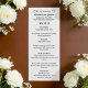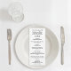 A wedding menu card with black text on white background for couples seeking a classic and timeless color combination that can complement various wedding themes. It is also suitable for couples who prefer a text based design without background elements for readability. The black text contrasting on the white background also improves readability. The text is center aligned and the fonts used are calligraphy, script and sans serif. Calligraphy and script fonts are used to enhance the design while the sans serif font is used to enhance readability. Customize it by typing the names of the bride and groom, date, location and menu details. You can also change the wording in the design tool including the font style, font color and background color. Please check the appearance of the front and back sides after typing text. If the appearance is pleasing to you, you can place your order now. If you need to resize or reposition the text, please adjust in the design tool. To the bride and groom, congratulations on your engagement! Wishing you both a lifetime filled with love and happiness.